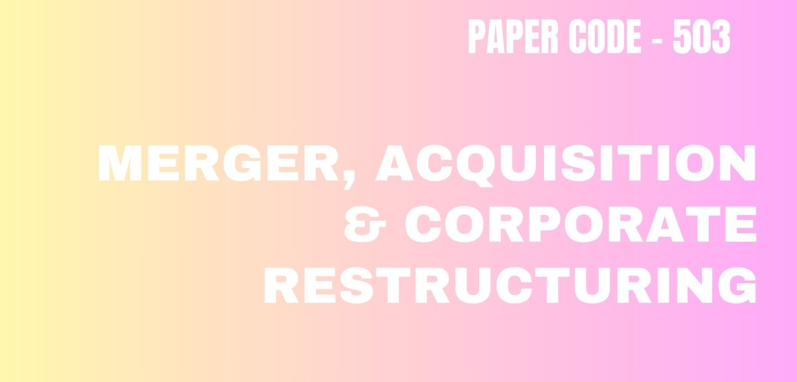 Paper Code - 503 | Merger, Acquisition & Corporate Restructuring
